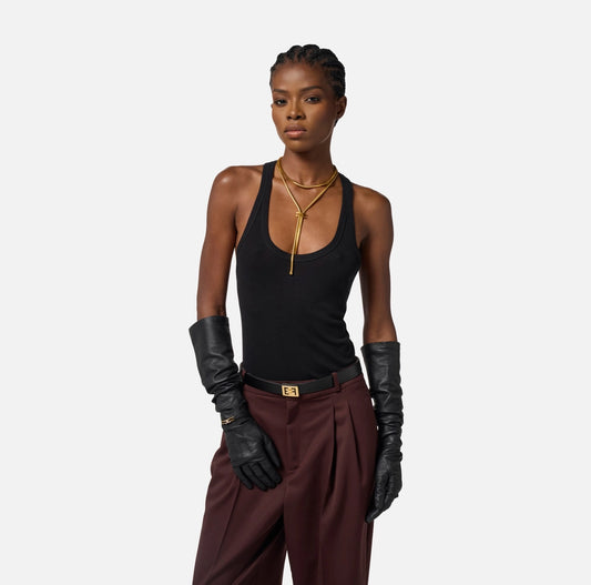 Guanti in pelle nappata con dettaglio logo GU05R56E2 Elisabetta Franchi