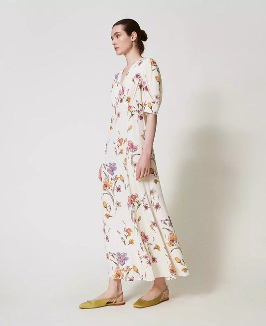 Abito lungo in crêpe de Chine a fiori TwinSet