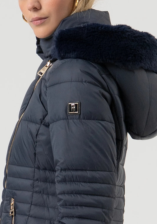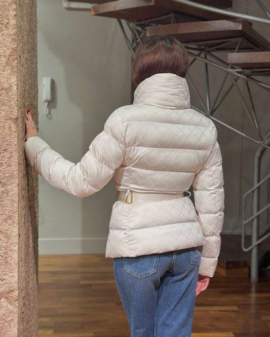 Piumino in tessuto vela jacquard con cintura PI83D56E2 Elisabetta Franchi