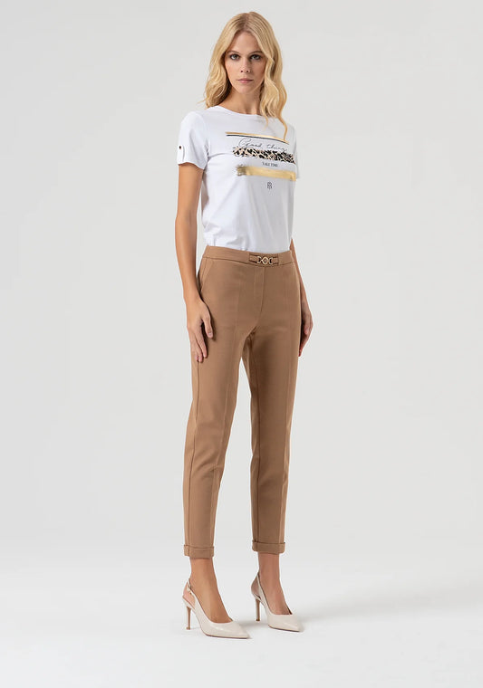 Pantaloni in crêpe leggero con pinces PA12556E2 coffee Elisabetta Franchi