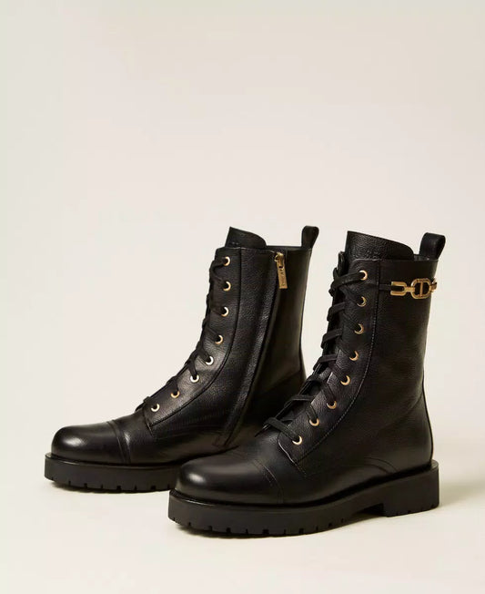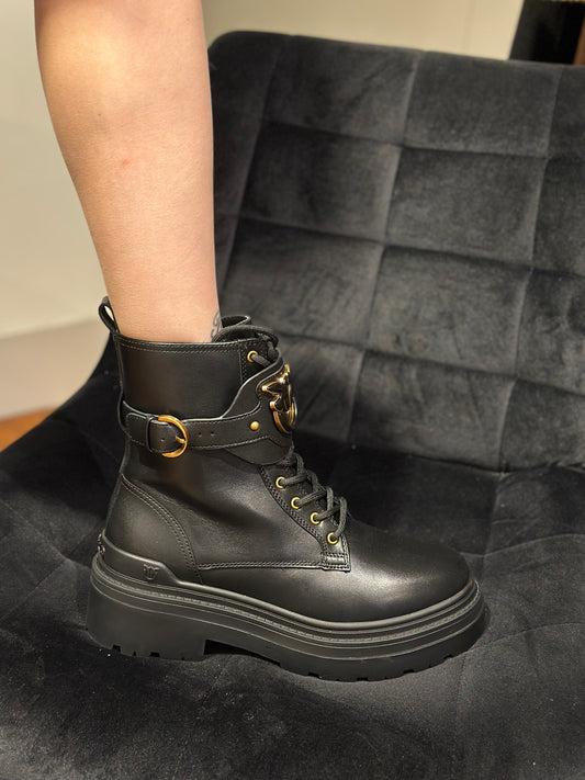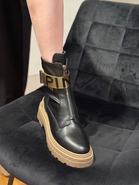 Scarpe da tennis in pelle con logo bianco e nero Pinko