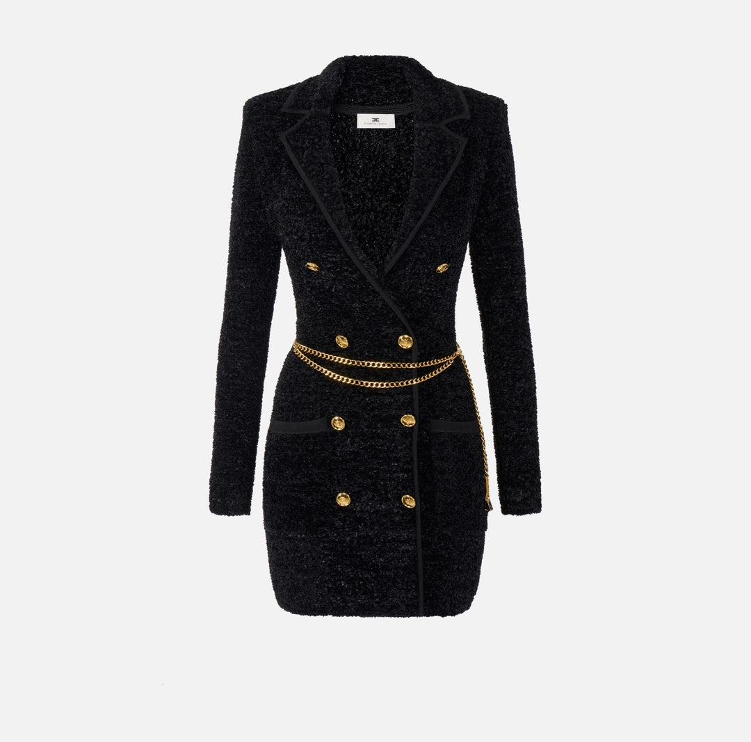 Abito in ciniglia bouclé con cintura AM32S57E2 Elisabetta Franchi