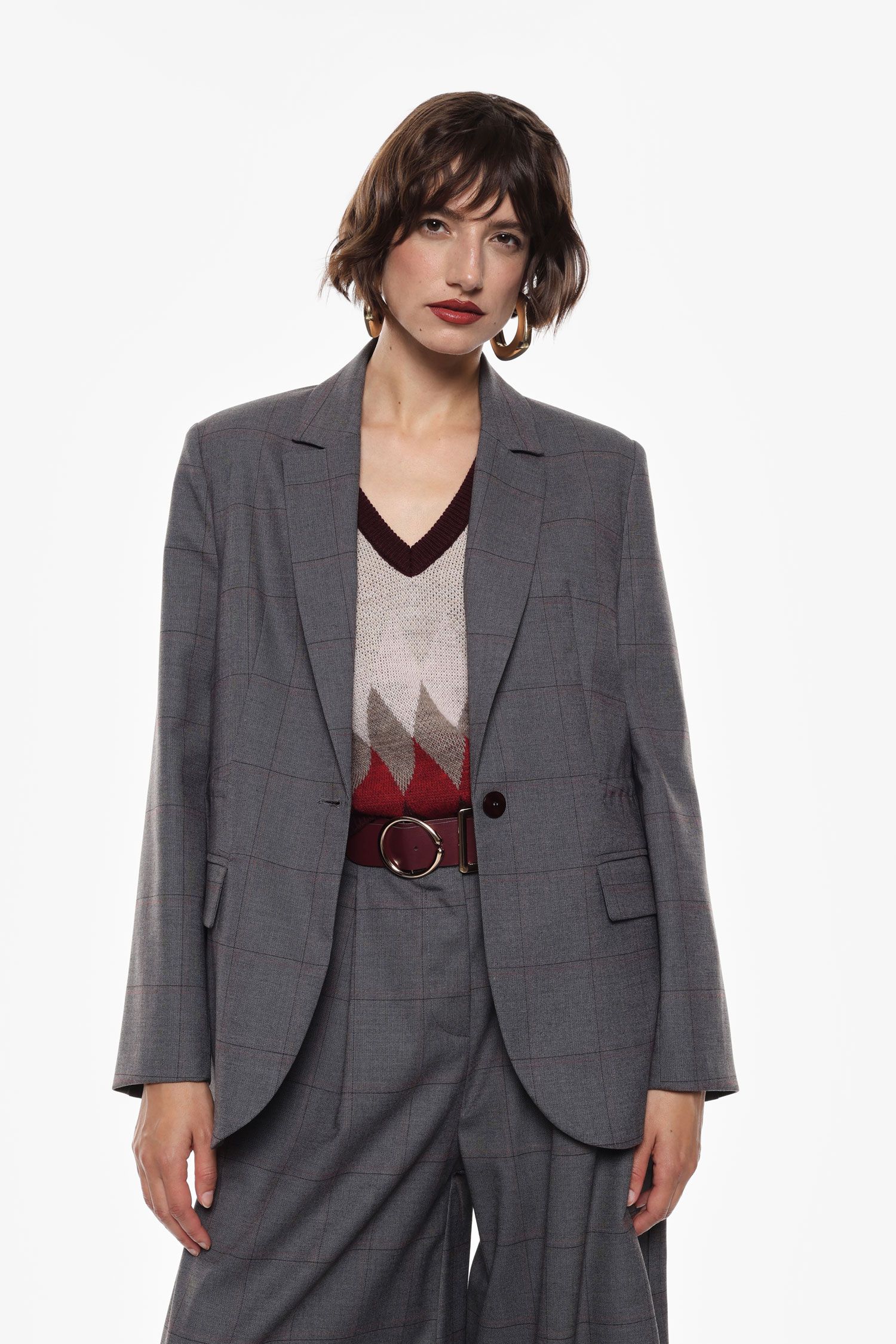 Un blazer dalla silhouette classica impreziosito da una delicata stampa a quadri, perfetto per chi ama distinguersi con discrezione. Le linee pulite si sposano con un pratico bottone centrale, promettendo eleganza e comfort in ogni occasione formale o informale. Trasforma ogni giornata in un'esperienza stilosa con un capo di abbigliamento versatile e senza tempo.