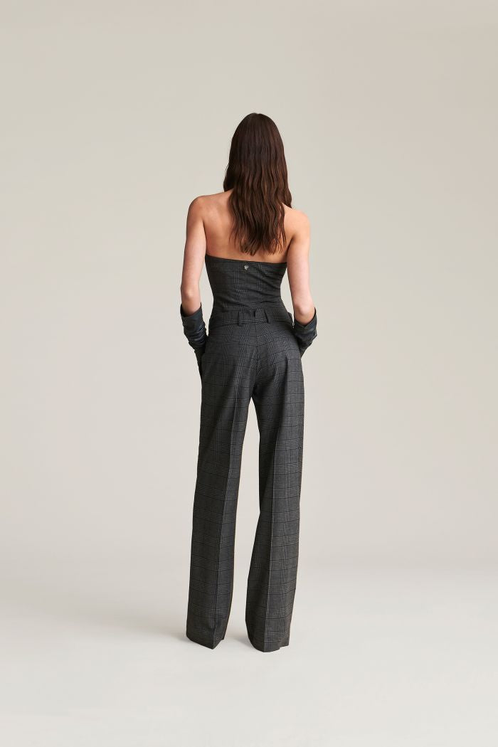 Struttura, carattere, femminilità. Il corsetto Daliah esalta il punto vita con le linee definite e la chiusura frontale, mentre il pattern check aggiunge un tocco maschile a un capo profondamente seducente. Da indossare con la gonna coordinata e sotto giacche over, per costruire layering audaci.