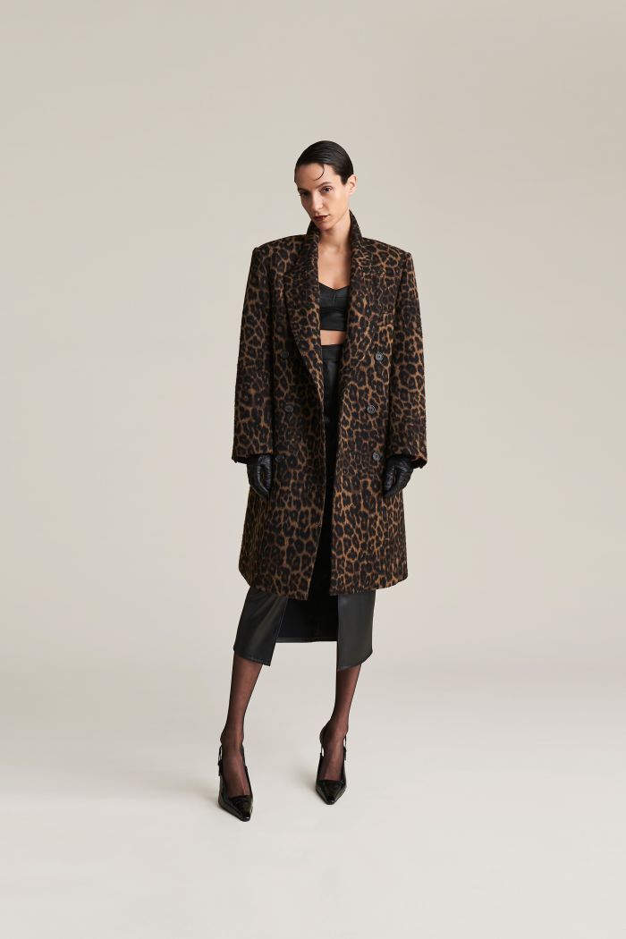 Il classico doppiopetto si accende di un’irresistibile grinta wild. Path è il cappotto over con motivo animalier, per una resa impattante e sicura. Il taglio strutturato, con revers a lancia e bottoni ricoperti, esalta la silhouette e mette subito le cose in chiaro: chi lo indossa non passa inosservata.