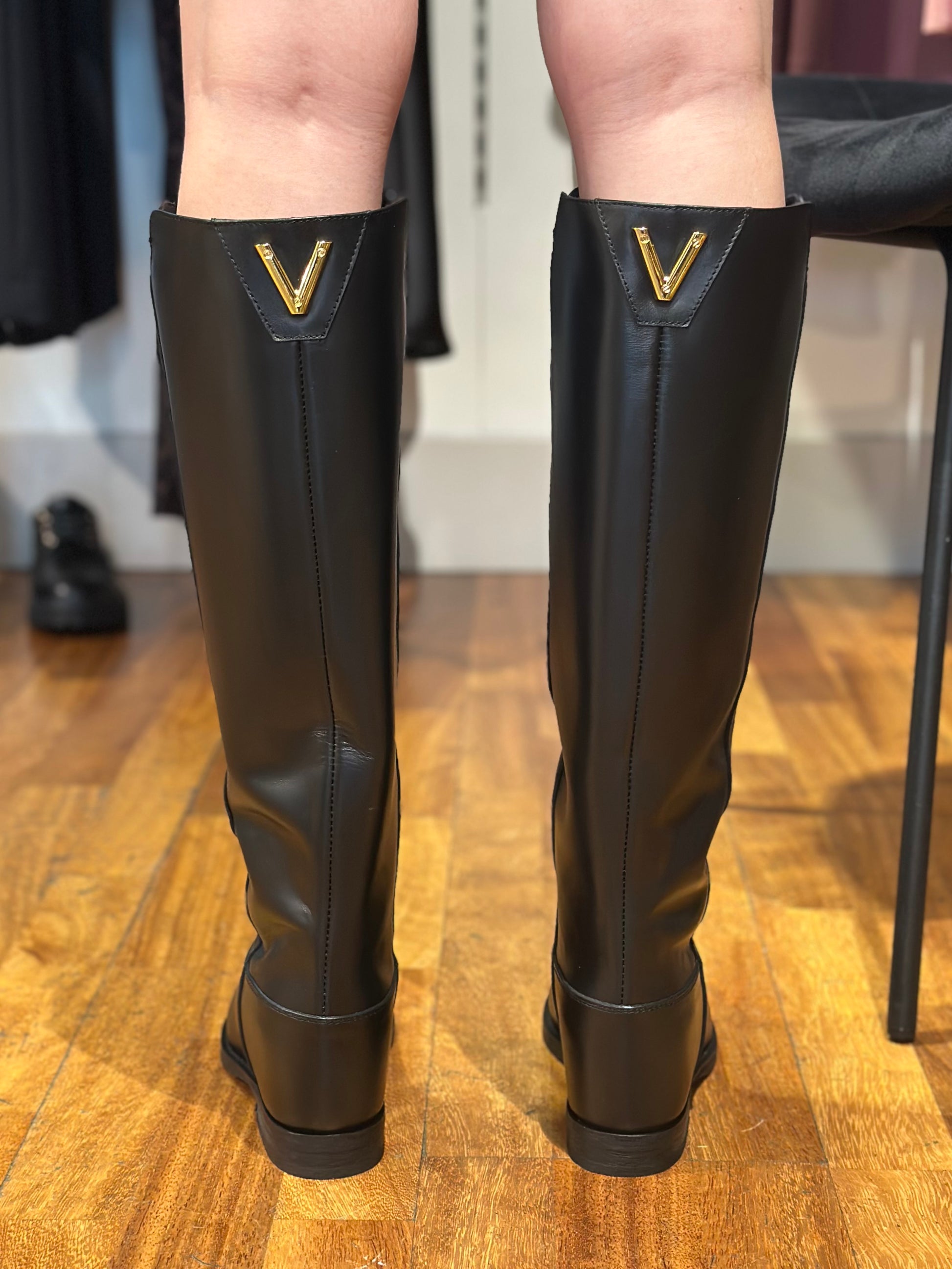 Stivale in pelle nera, con V iconica dorata sul retro, must have del brand