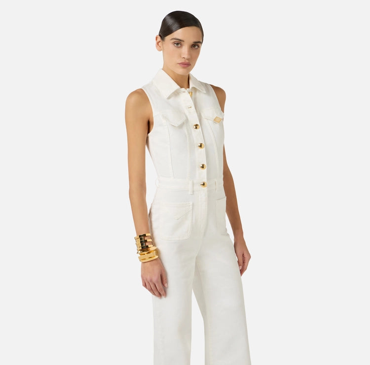 Tuta in denim con dettaglio logo TJ45N61E2 Elisabetta Franchi